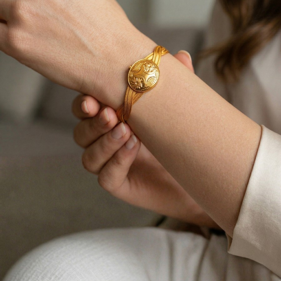 Üç Sıra Çift Sarmal Modern Hasır Altın Kaplama