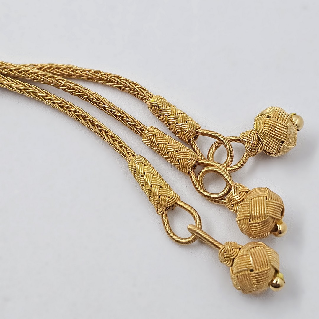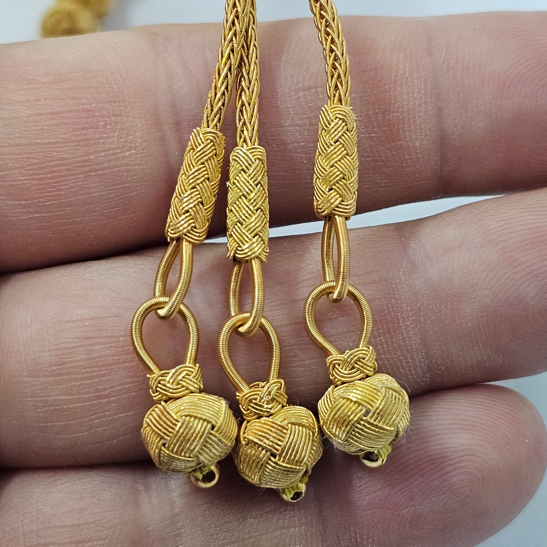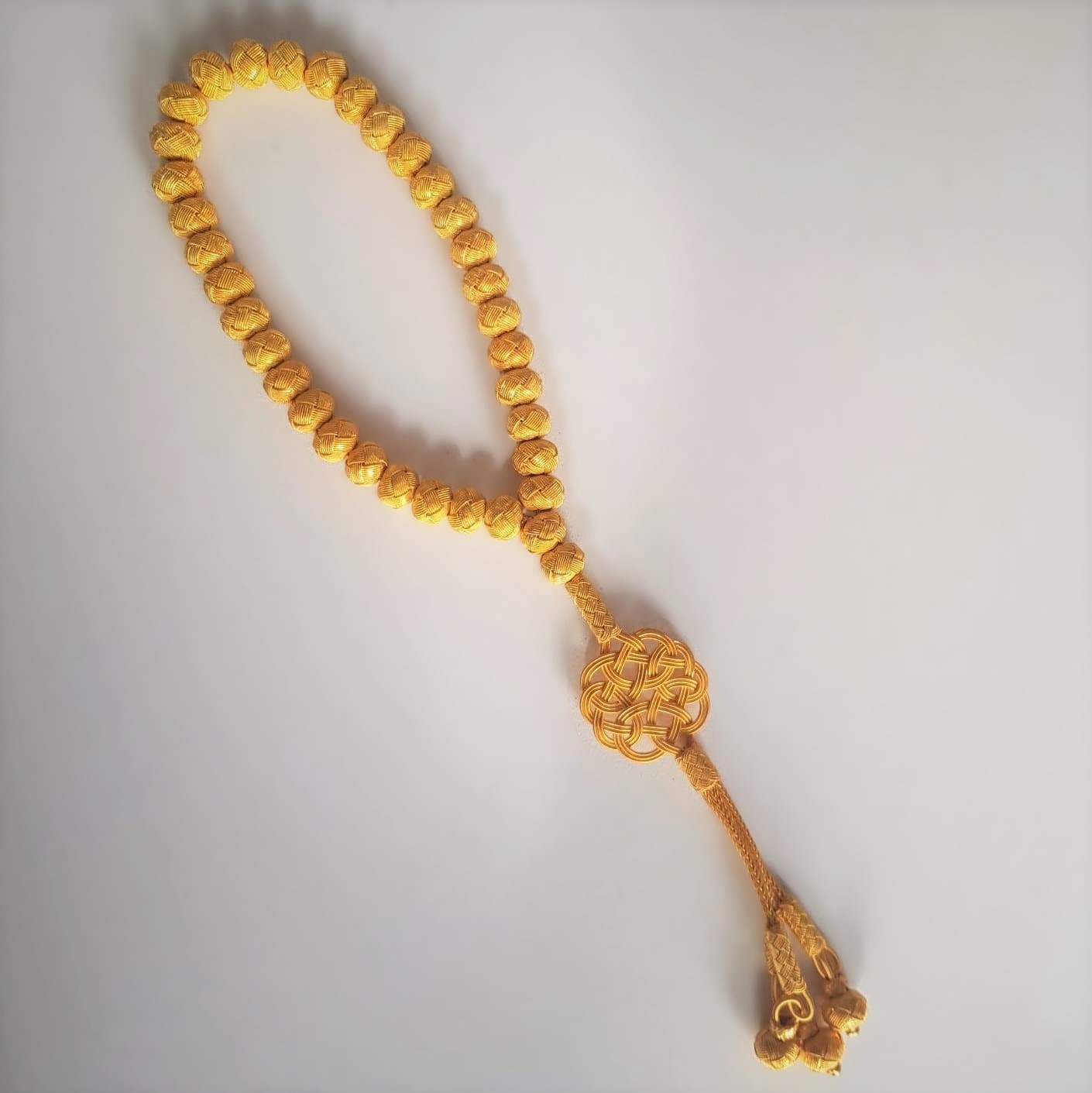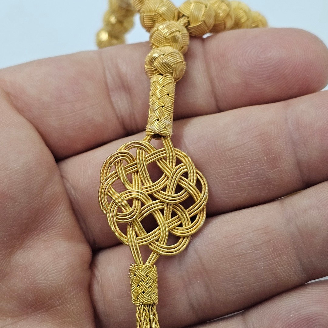 Her bir detay, ustaların özenle işlediği el örgüsü teknikleriyle bezenmiştir. Altın kaplama, tesbihe hem parlaklık hem de şıklık katar. Bu tesbih, hem manevi bir obje olarak kullanılabilir hem de şık bir aksesuar olarak kombinlenebilir. Günlük kullanımda rahatlık sağlarken, özel günlerde de şıklığınızı tamamlayacak zarif bir seçenektir.