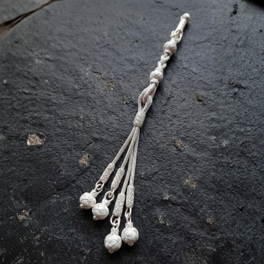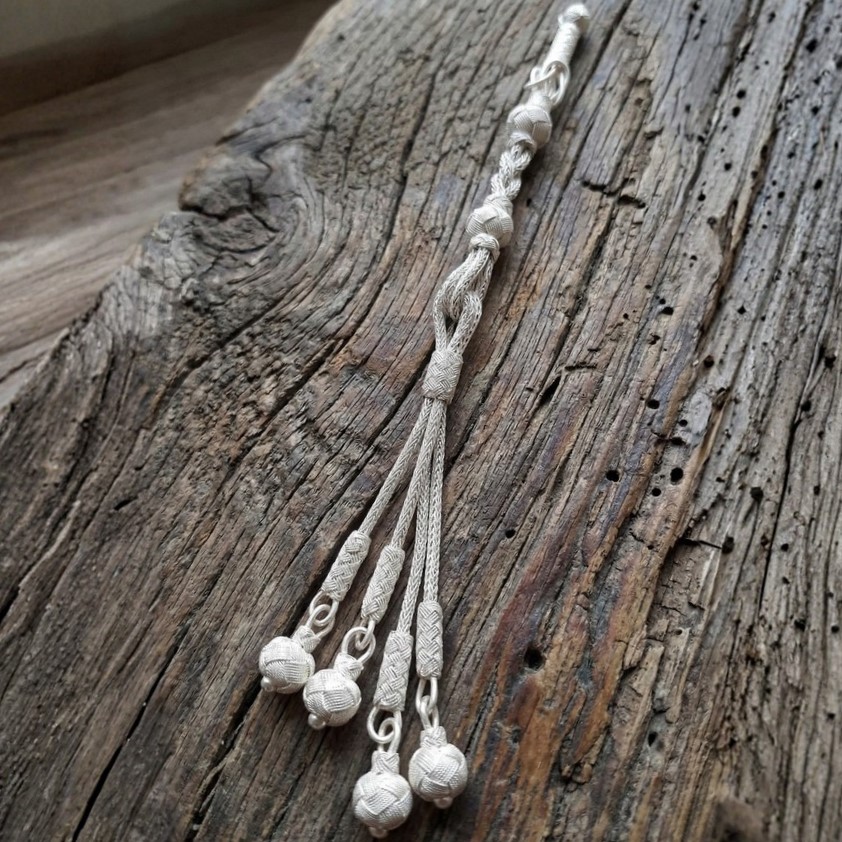999 ayar gümüş dörtlü örgü püskül, hem dayanıklılığı hem de estetik duruşuyla koleksiyonluk tesbihlerin vazgeçilmez parçasıdır. Dört kanallı (dörtlü) örgü yapısı, klasik püsküllere göre daha hacimli ve gösterişli bir duruş sergiler.
