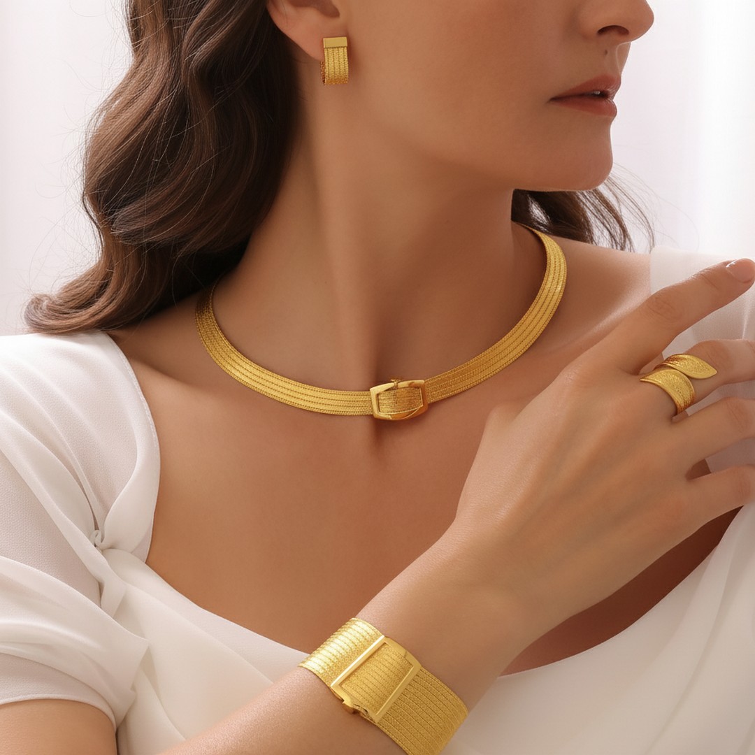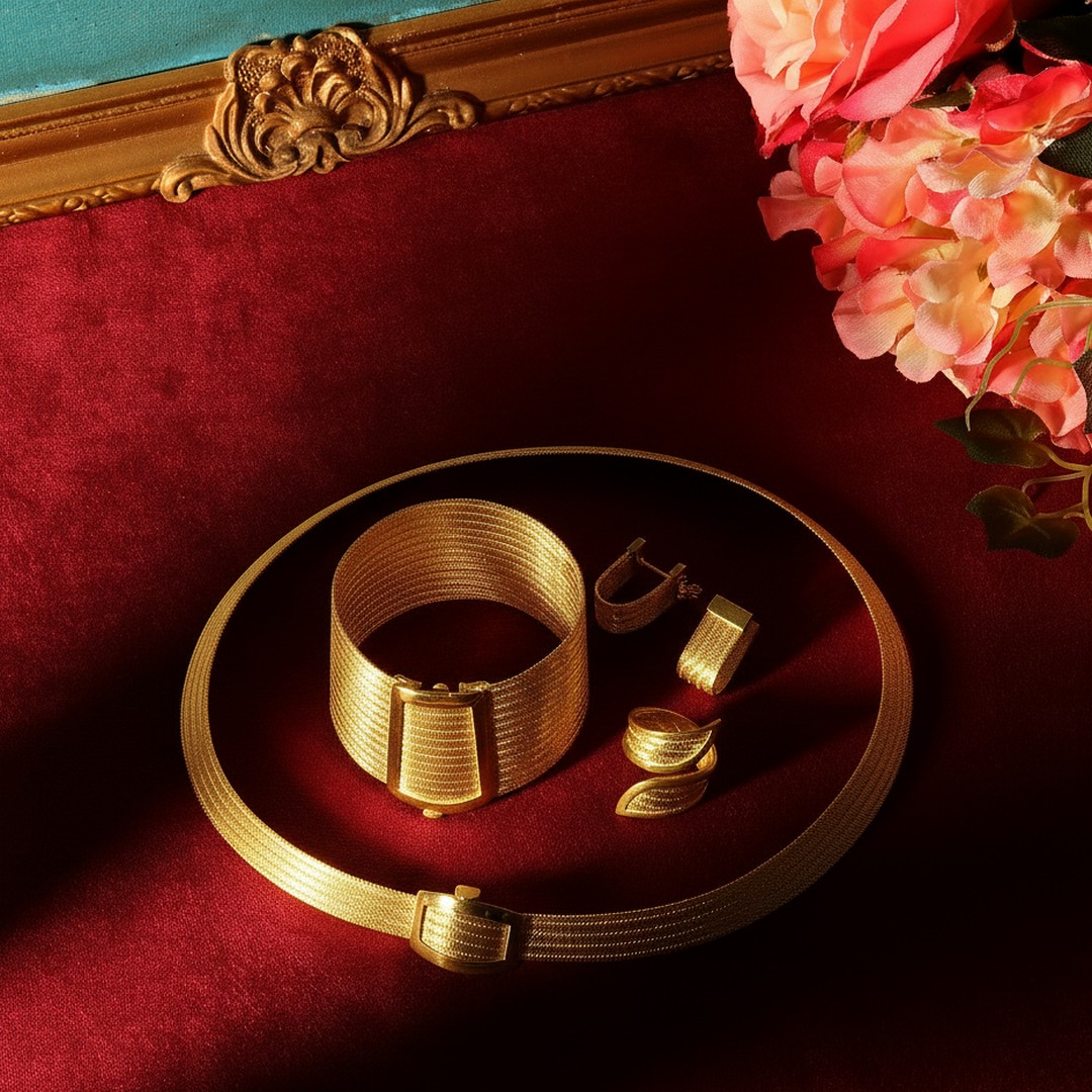 Renk Uyumu : Zengin altın rengi, özellikle siyah, lacivert, bordo ve zümrüt yeşili gibi koyu tonlardaki kıyafetlerle mükemmel bir kontrast oluşturarak şıklığınızı zirveye taşır.