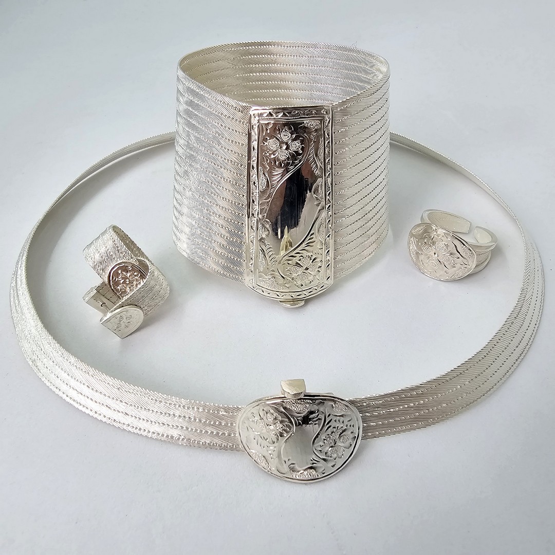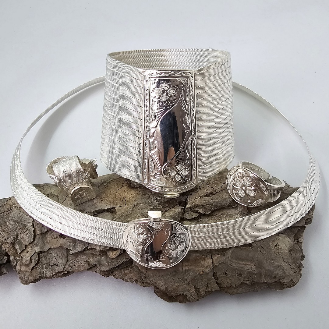 19-Row Hand-Engraved 925 Sterling Silver Trabzon Silver Jewelry Set