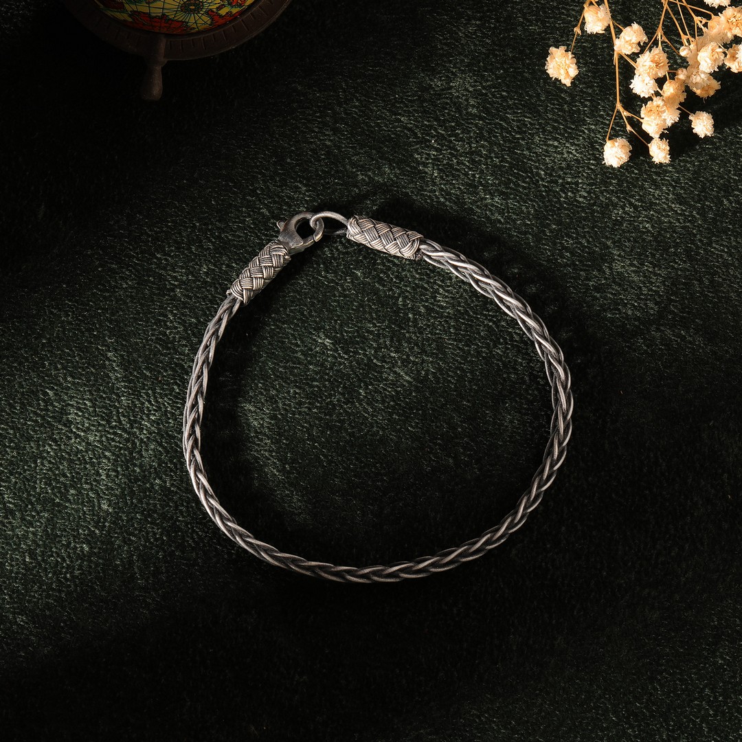 Elevate your style with our Silver Handknitted Twisted Rope Bracelet. Meticulously crafted from 999 pure silver, this bracelet features a unique twisted rope design that combines durability with elegance. The intricate detailing reflects exceptional craftsmanship, making it a timeless accessory for any occasion.
