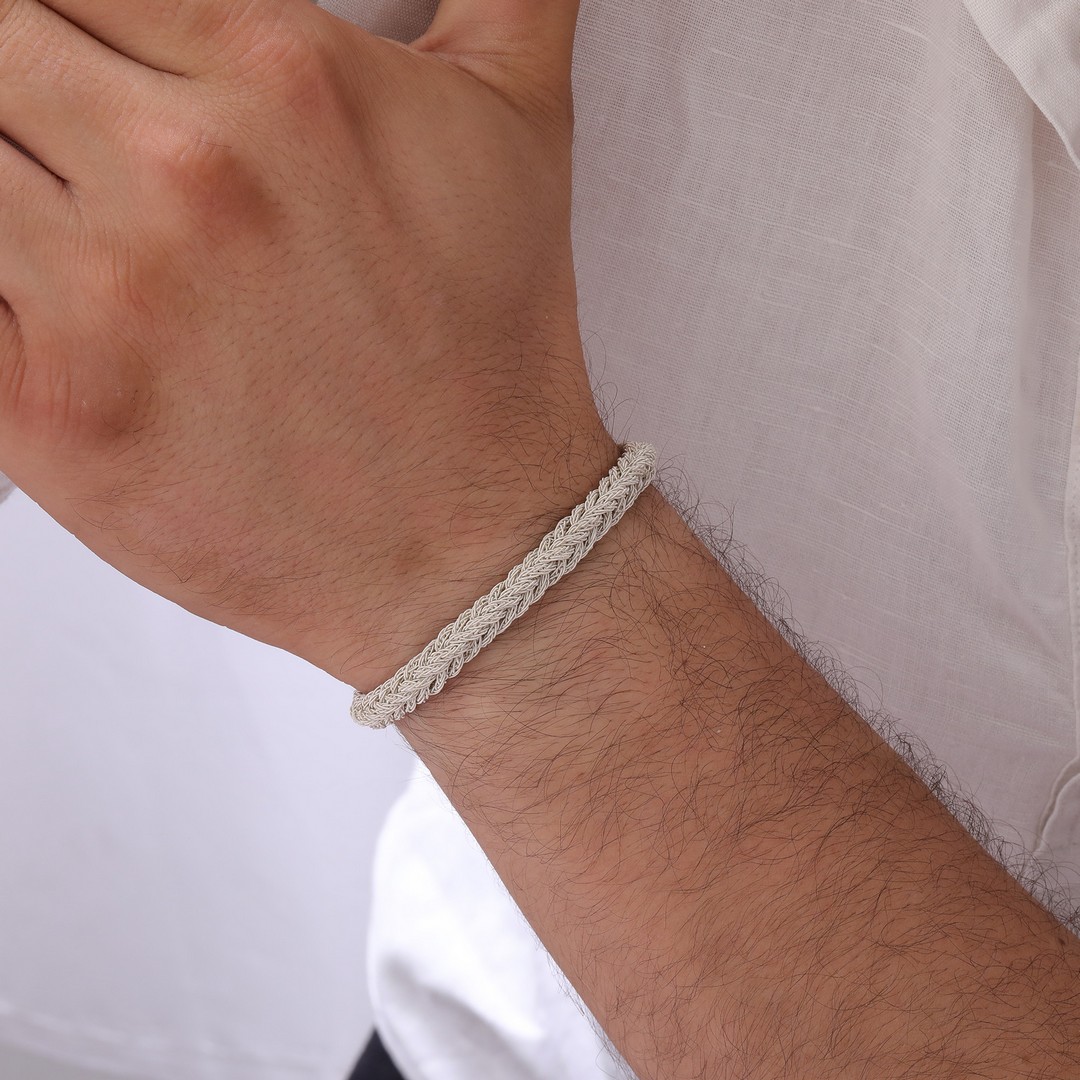 Thick Hair Braid Hand Knitted Silver Bracelet
