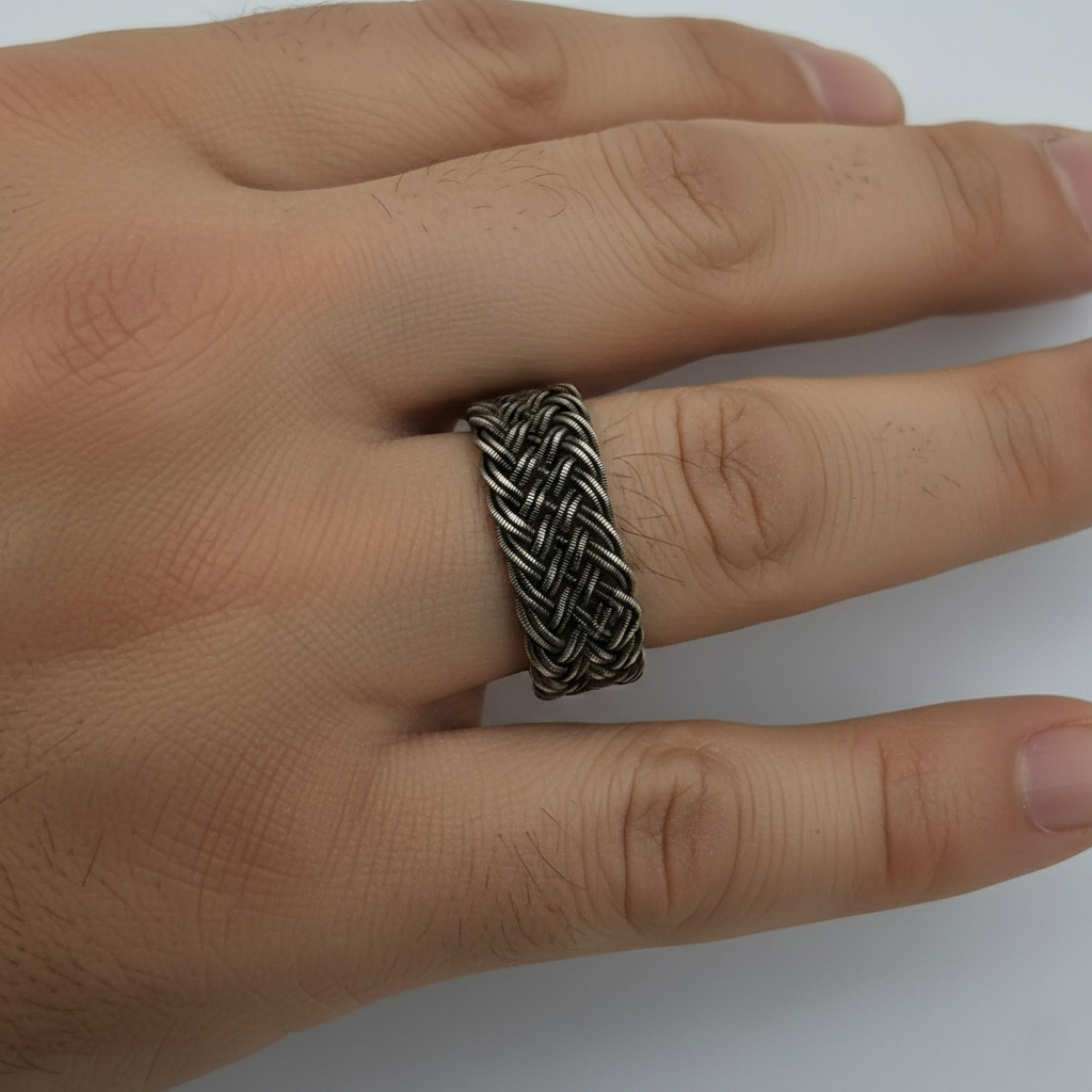 Eskitme Gri İkili Örgü Gümüş Kazaziye Yüzük