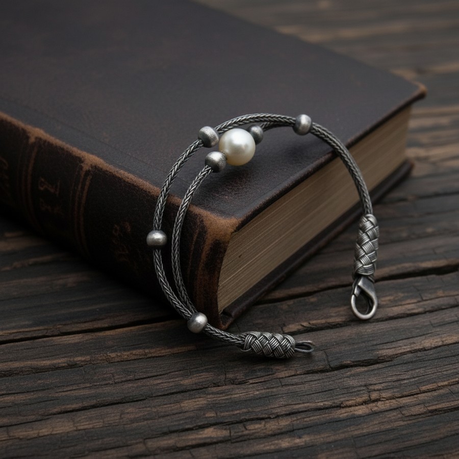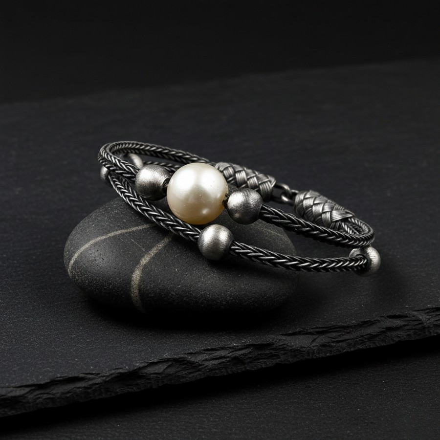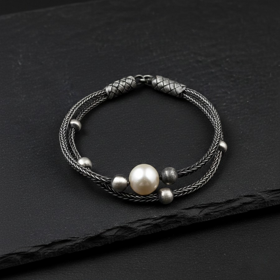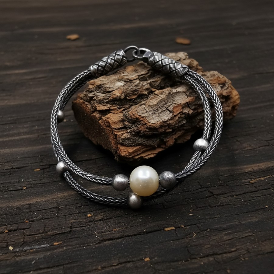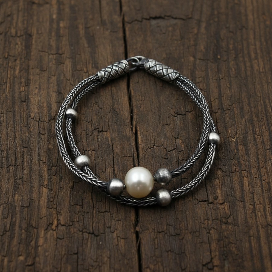 Eskitme Gri Tek İnci Dorika Gümüş Kazaziye Bileklik, Türk el sanatlarının en özel tekniklerinden biri olan Kazaziye ile üretilmiştir. 999 ayar saf gümüş kullanılarak hazırlanan bu bileklik, tek inci detayı ve eskitme gri tonlarıyla modern ve minimalist bir tarz sunar.