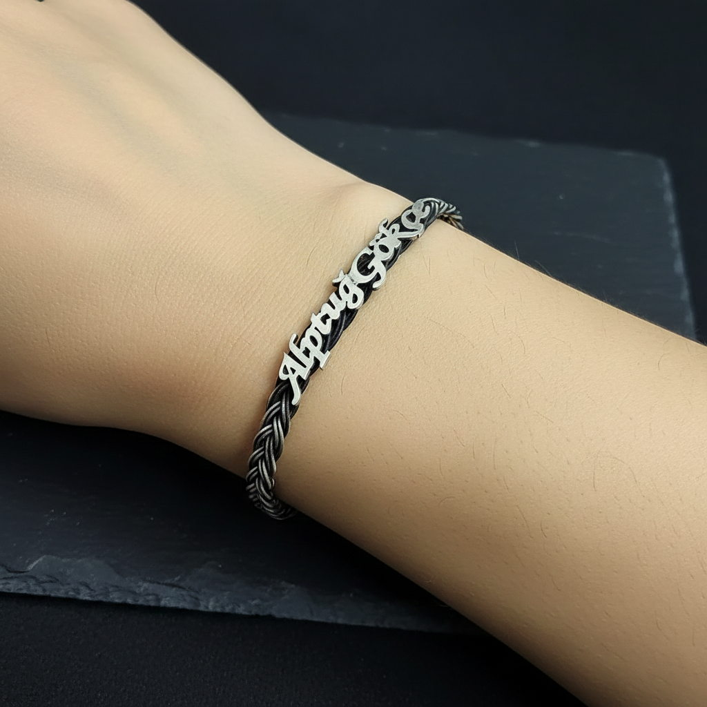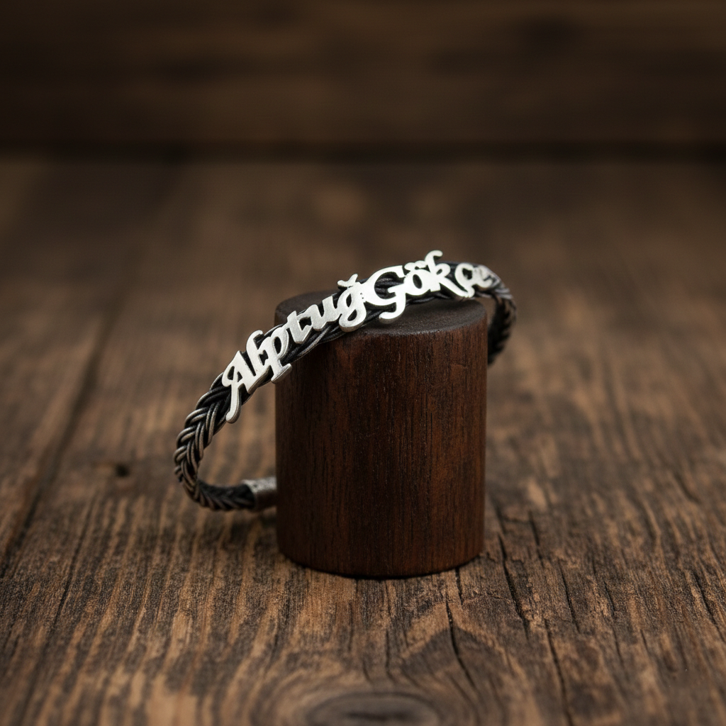 Bu bilekliği benzersiz kılan en önemli özellik, üzerine istediğiniz ismi veya anlamlı bir kelimeyi kişiselleştirerek ekletebilmenizdir. Bir sevgilinin adı, bir çocuğun ismi, özel bir tarih veya motivasyon veren bir kelime… Harfler, örgü desenine uyumlu bir şekilde, yine el işçiliğiyle bilekliğe işlenir. Bu sayede her İsimli Kişiselleştirilebilir Örgü Gümüş Bileklik, taşıyıcısına özel, tek ve eşsiz bir parça haline gelir.