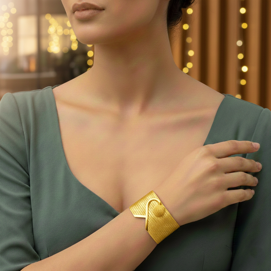 Özel Tasarım Trabzon Hasır Set, geleneksel Türk kuyumculuğunun en özgün tekniklerinden biri olan Trabzon hasır işçiliğinin görkemli bir yorumudur. Bu set, 21 sıra geniş bilezik ve 7 sıra zarif gerdanlıktan oluşarak tam bir uyum içinde tasarlanmıştır. Bileziğin yaklaşık 5 cm’lik etkileyici genişliği, bilekte cesur ve şık bir siluet oluştururken, yaklaşık 1.5 cm genişliğindeki gerdanlık, boyunda dengeli ve zarif bir görünüm sunar.