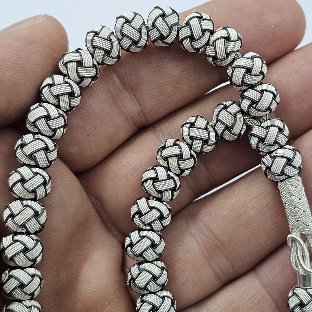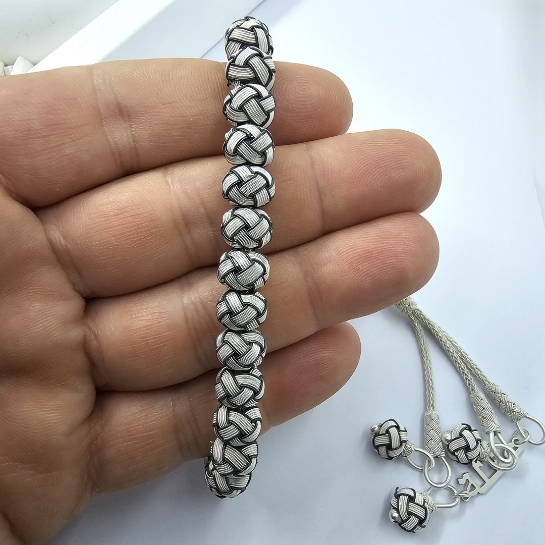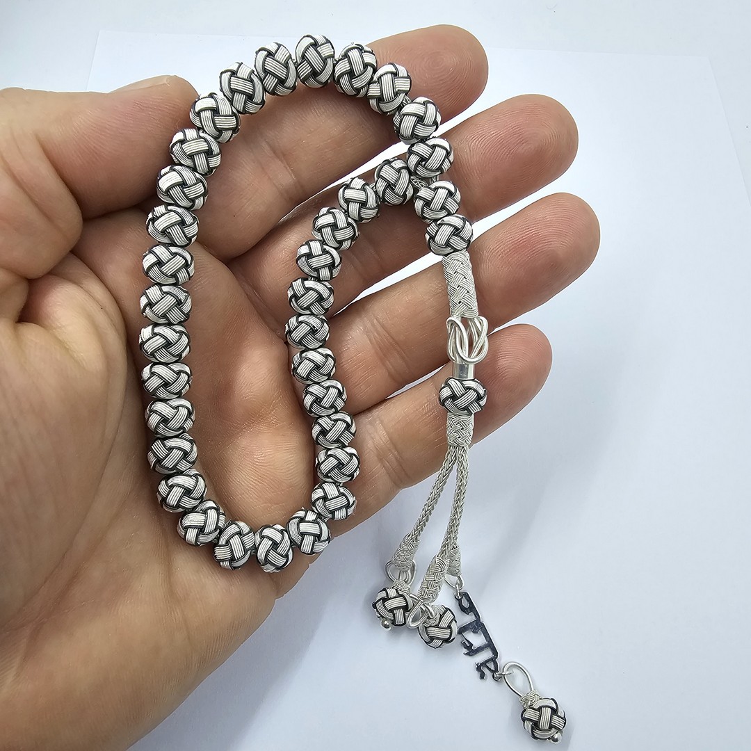 Siyah Beyaz Gümüş Kazaziye Tesbih