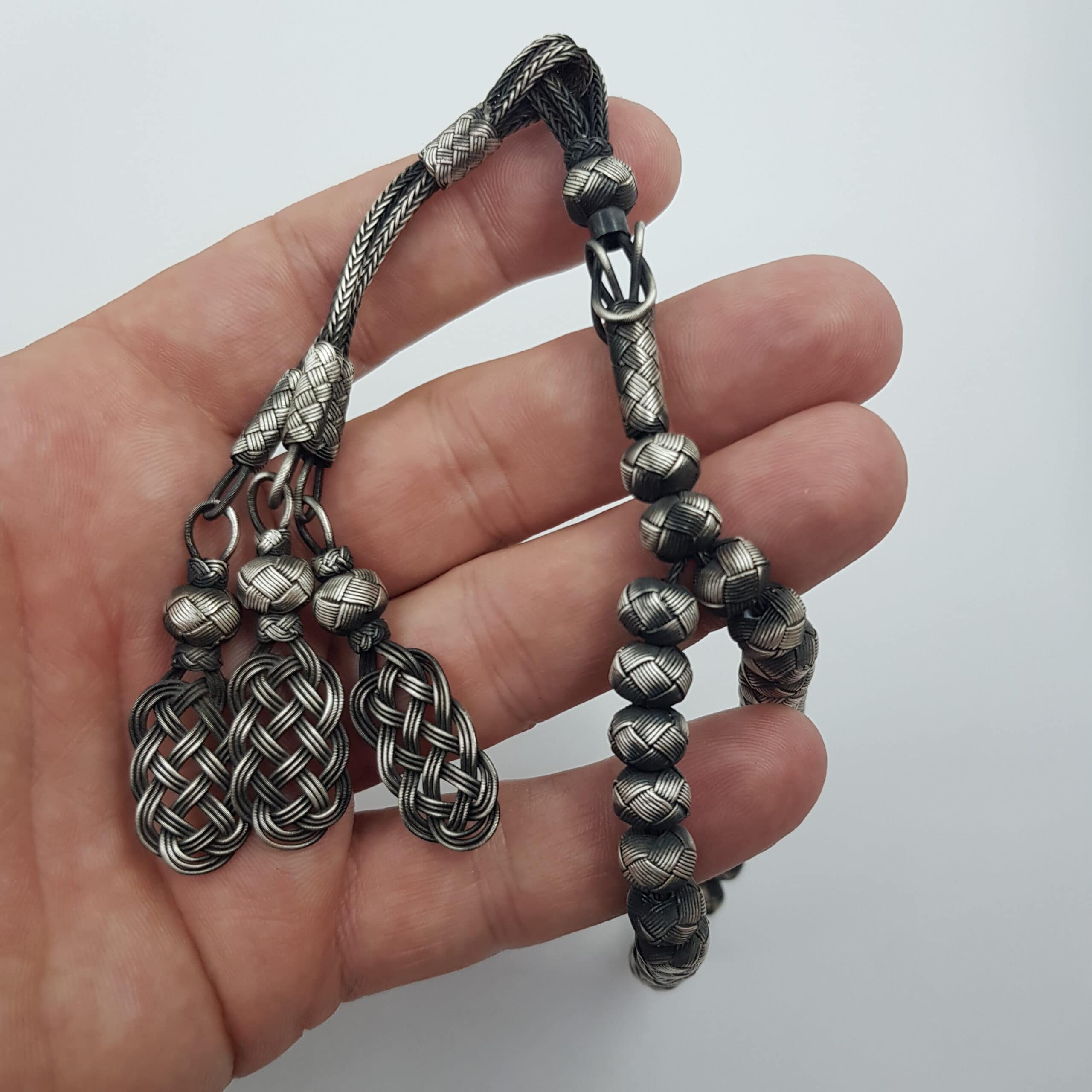 Üçlü Kamçı Püskül Gümüş Kazaz Tesbih